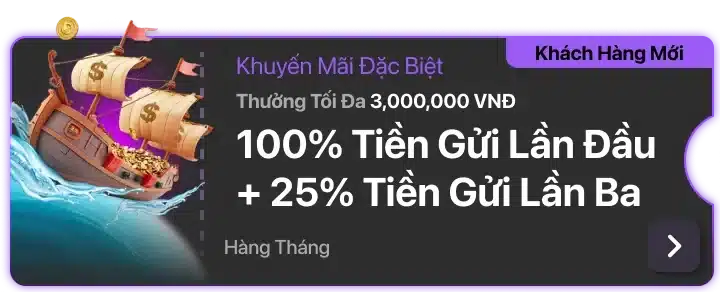 Ngay khi đăng ký thành công, người chơi sẽ nhận được thưởng 100% tiền nạp đầu tiên và 20 vòng quay miễn phí. Tiếp theo là các chương trình hoàn trả mỗi ngày, thưởng tích lũy, quay số may mắn, và quà tặng khi thăng hạng VIP.
